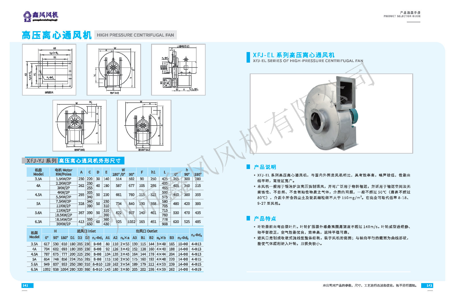 產(chǎn)品簡(jiǎn)介: XFJ-EL系列高壓離心通風(fēng)機(jī)可取代低率8-18、9-27型風(fēng)機(jī)。