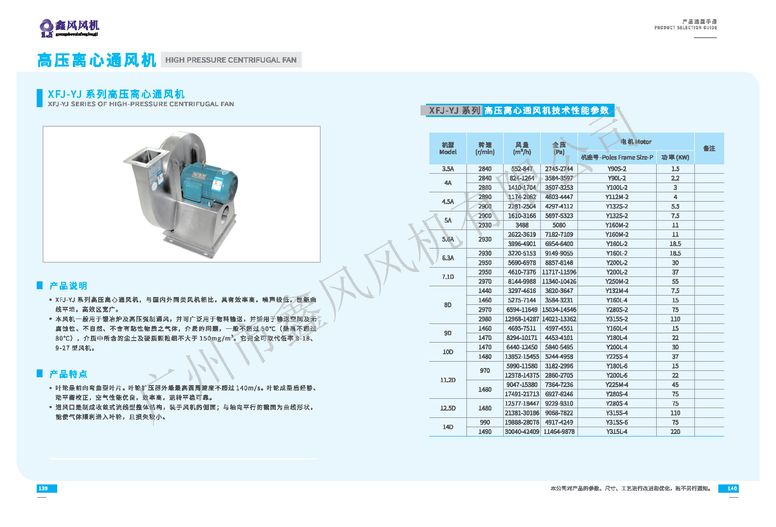 XFJ-YJ系列高壓離心風(fēng)機(jī)可取代舊式的8-18型離心風(fēng)機(jī)、9-27型離心風(fēng)機(jī)。
