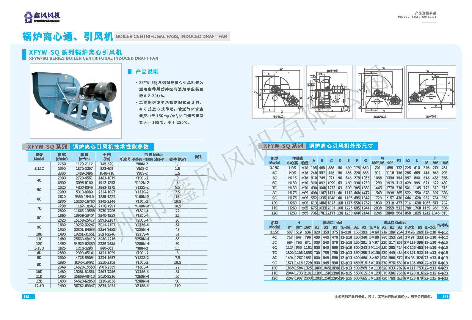 XFYW-SQ系列鍋爐離心引風(fēng)機(jī)技術(shù)性能參數(shù)